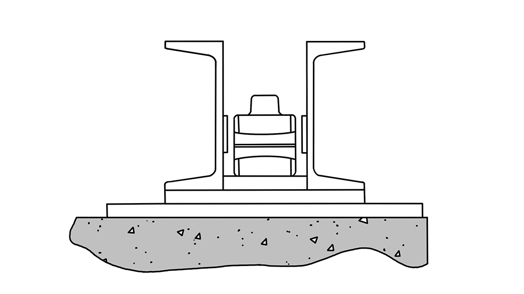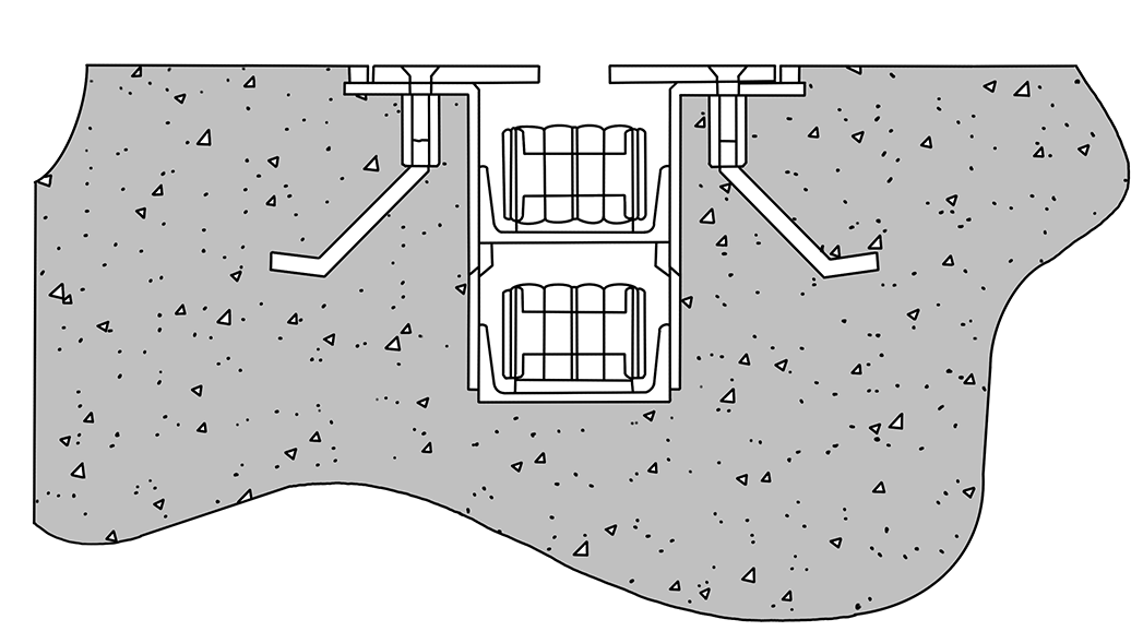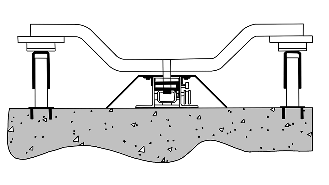Cross-sectional view of a flex tracker towline conveyor embedded in the floor.